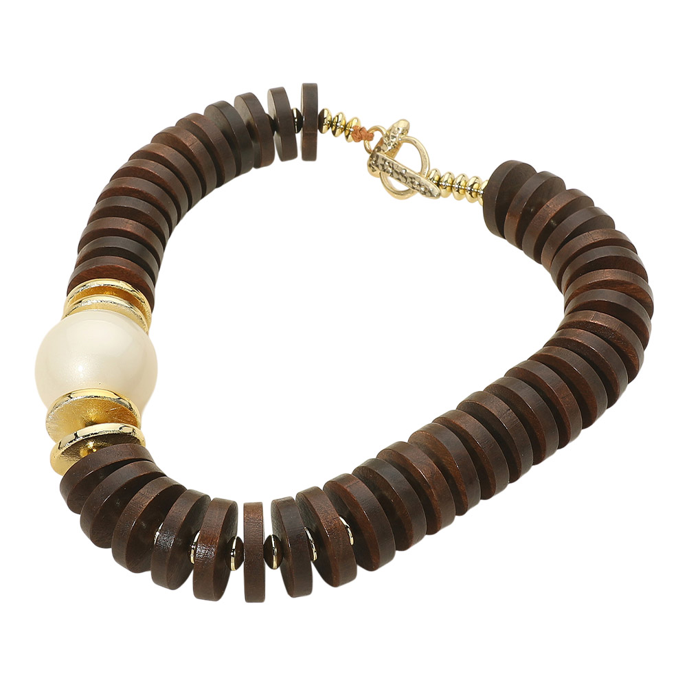 Details • Necklace Size : 22" + 1" L • Decor Size : 1.5" L • Bold statement necklace featuring stacked disc beads and a sculptural focal accent for a modern, high-impact look. Designed to add structure and dimension to any outfit, this piece works effortlessly for everyday styling or elevated occasions. A standout accessory ideal for boutiques seeking fashion-forward, trend-driven statement jewelry. • Lead and Nickel Compliant
