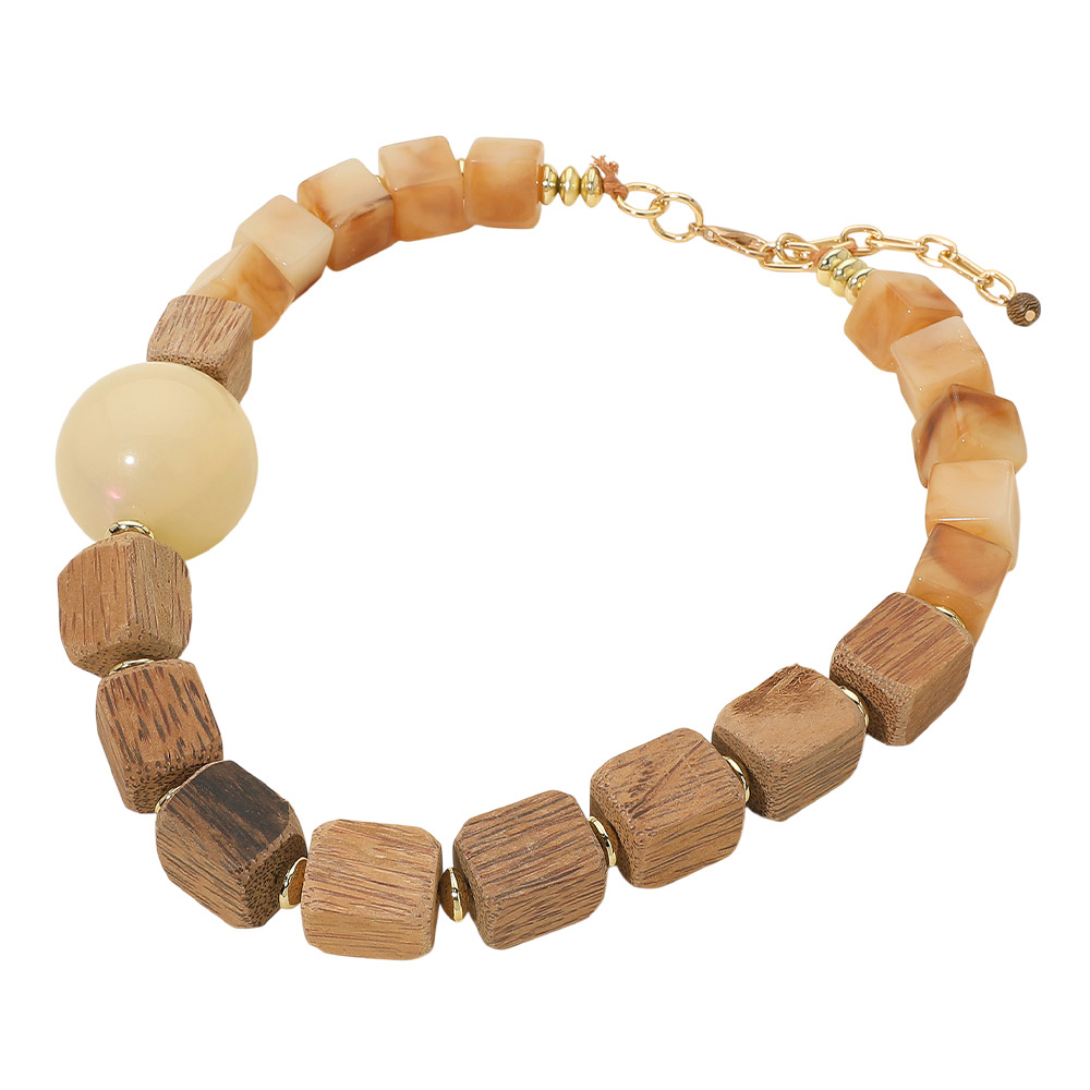 Details • Necklace Size : 23.5" + 3" L • Decor Size : 1.5" L • Statement necklace designed with bold, chunky beads in varied shapes for a naturally styled, artisan-inspired look. This eye-catching piece adds texture and visual interest to everyday outfits and resort-ready styling. A great option for boutiques seeking unique, trend-forward accessories that stand out in curated jewelry collections. • Lead and Nickel Compliant