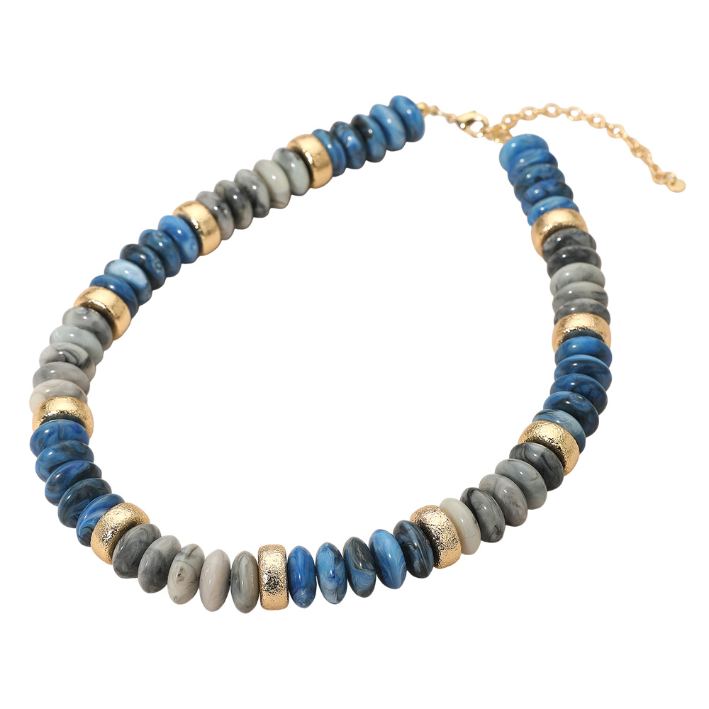 Details • Necklace Size : 17" + 3" L • Decor Size : 0.6" L • Bold and contemporary, this chunky beaded necklace features smooth disc-shaped beads with metallic gold-tone spacers. A versatile statement piece that elevates any outfit with its sleek, modern design. • Lead and Nickel Compliant