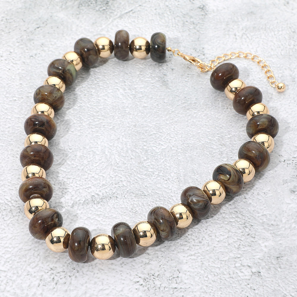 Chunky Resin Disc Metal Ball Beaded Statement Necklace