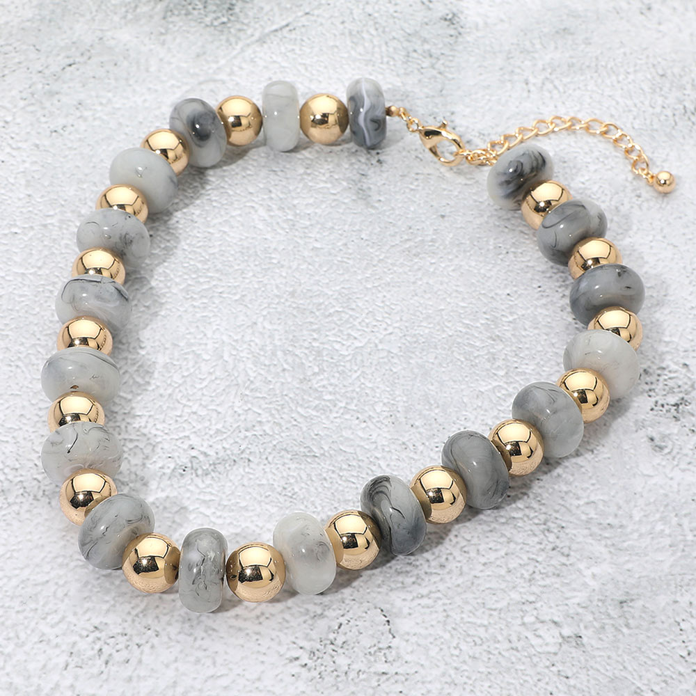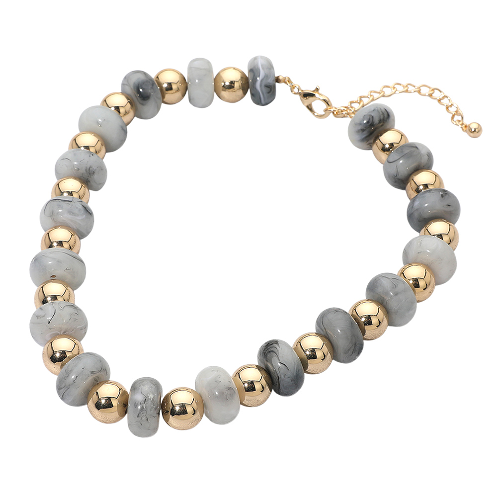 Chunky Resin Disc Metal Ball Beaded Statement Necklace