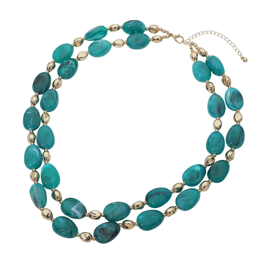 Chunky Resin Oval Marbled Pebble Beaded Layered Necklace
