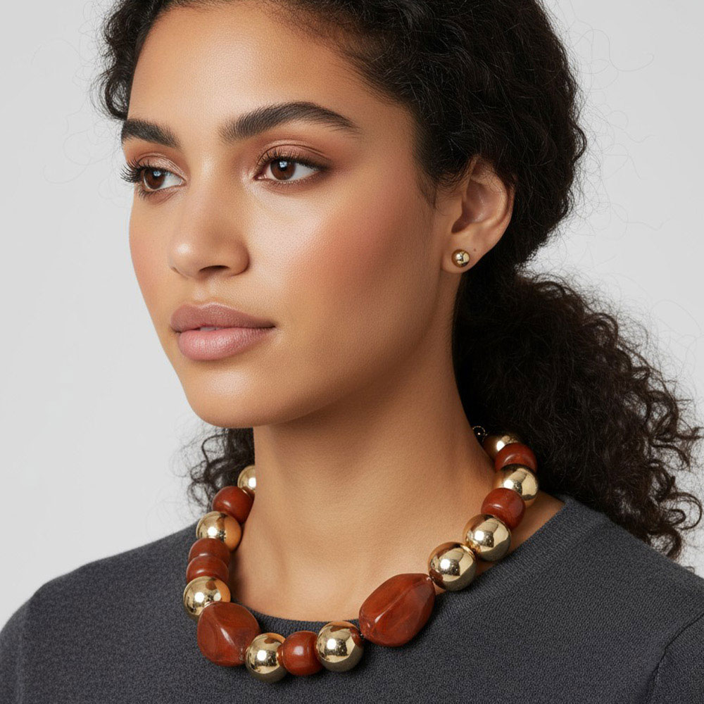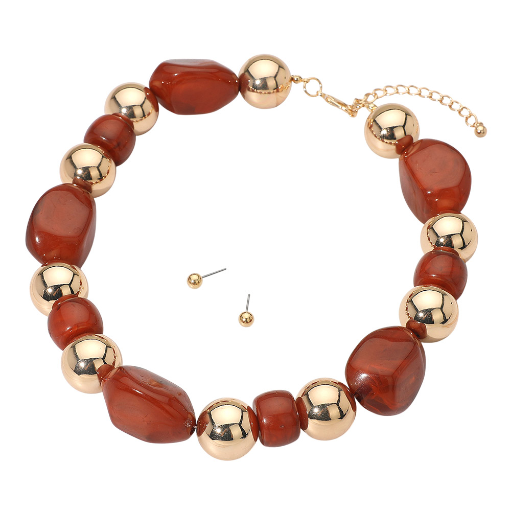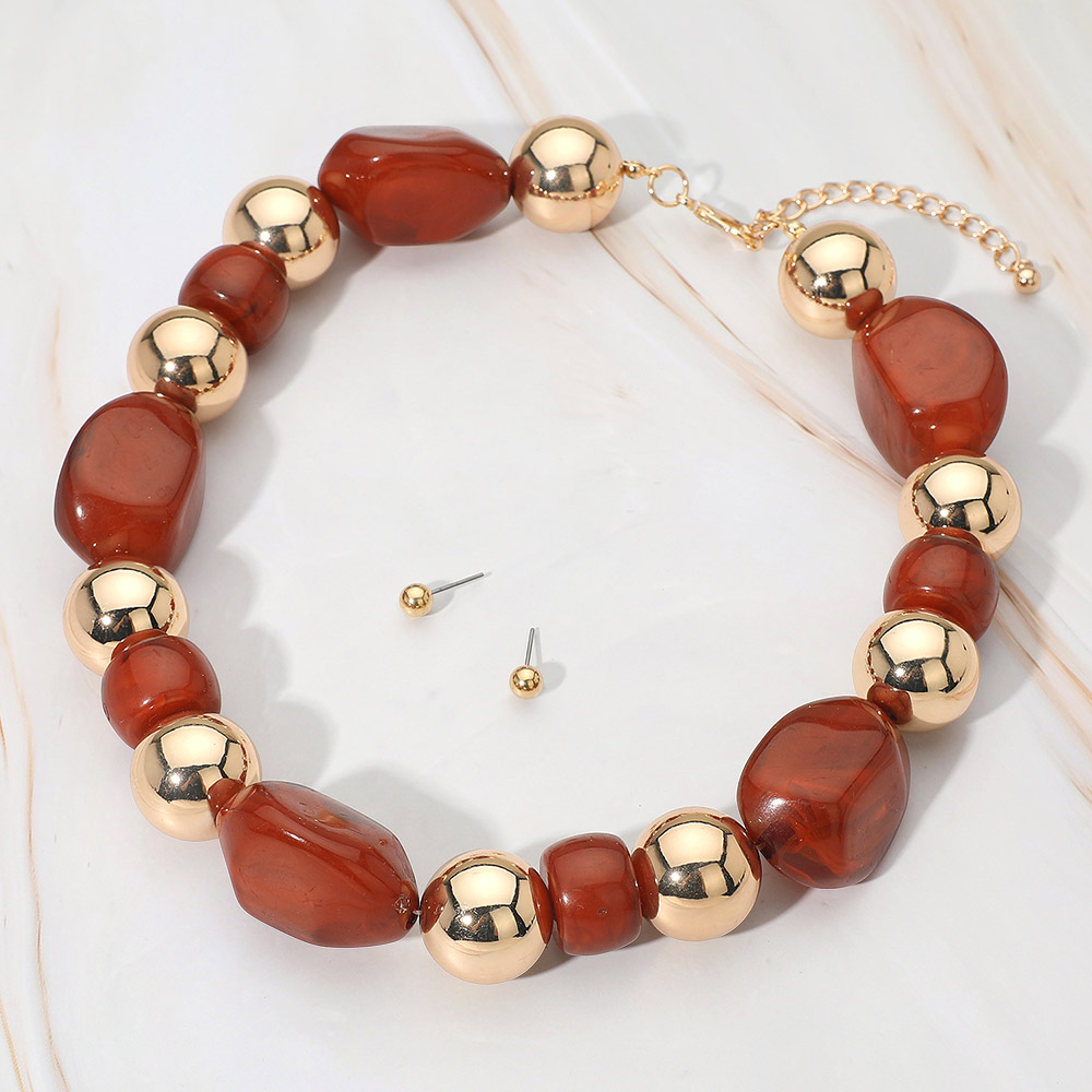 Chunky Resin Pebble Metal Ball Beaded Statement Necklace