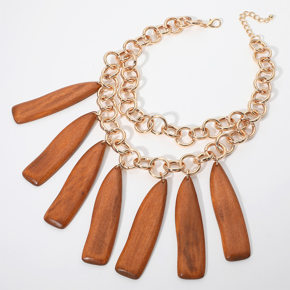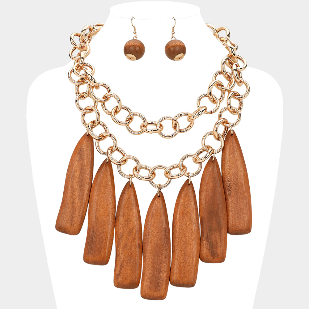 Bold Resin Charm Wooden Beaded Statement Necklace