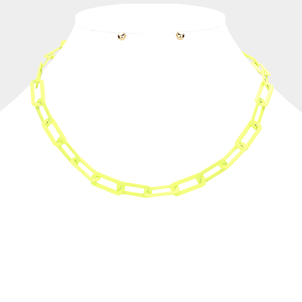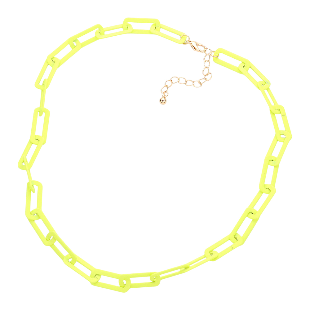 Colored Open Metal Rectangle Link Necklace