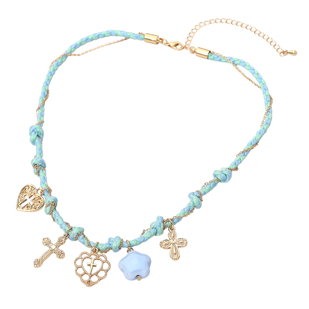 Details • Necklace Size : 16" + 3" L • Decor Size : 0.9" L • This necklace features a braided design highlighted with multiple hanging charms that add texture and movement. Built with an adjustable chain for a comfortable fit, it layers effortlessly with other pieces or stands alone as a statement accessory, making it a thoughtful gift or daily wear favorite. • Lead and Nickel Compliant