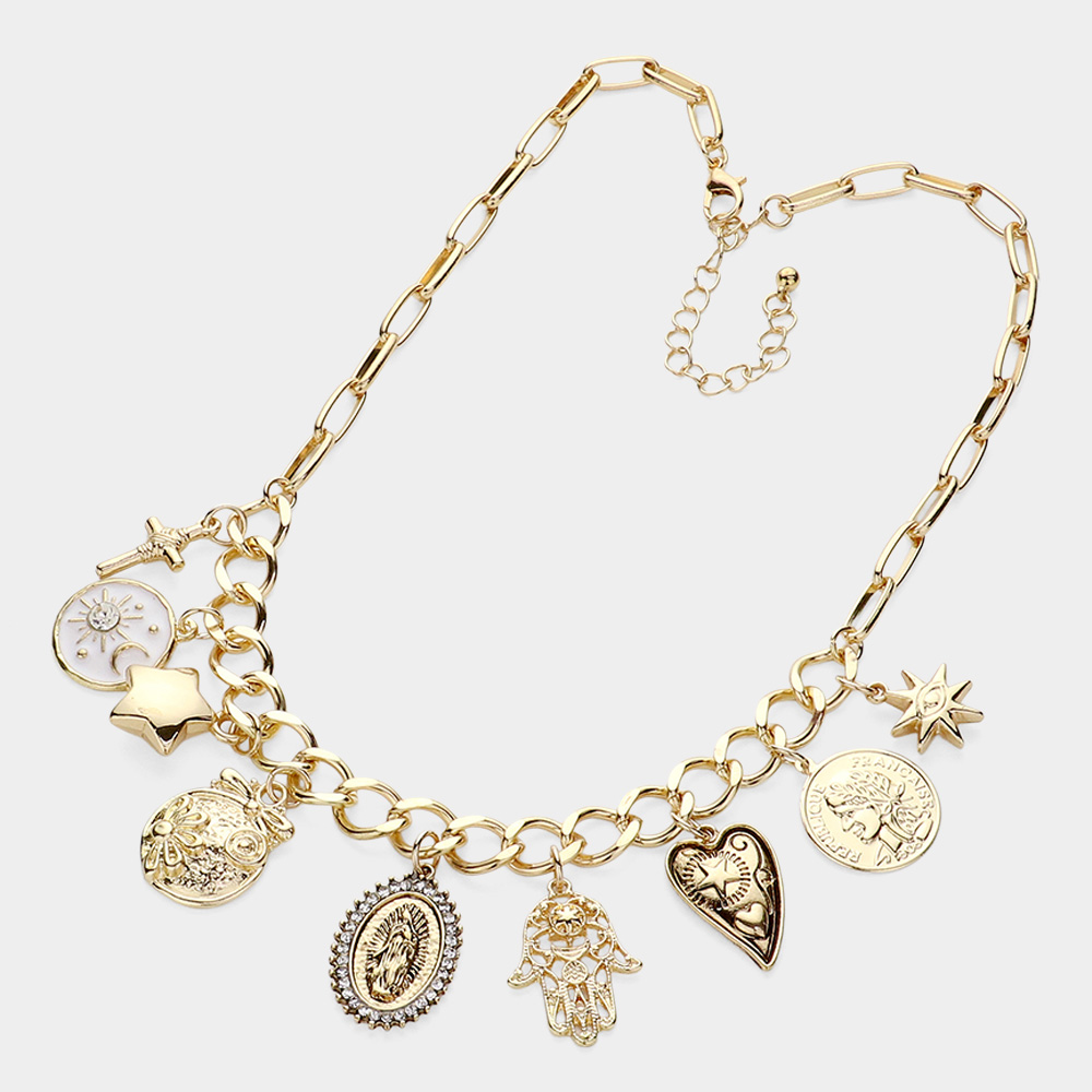 Cross Lady Guadalupe Star Heart Hamsa Hand Charm Chain Necklace