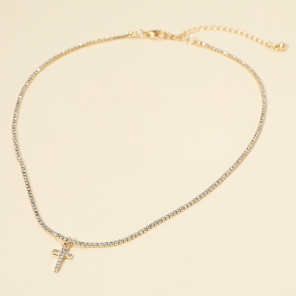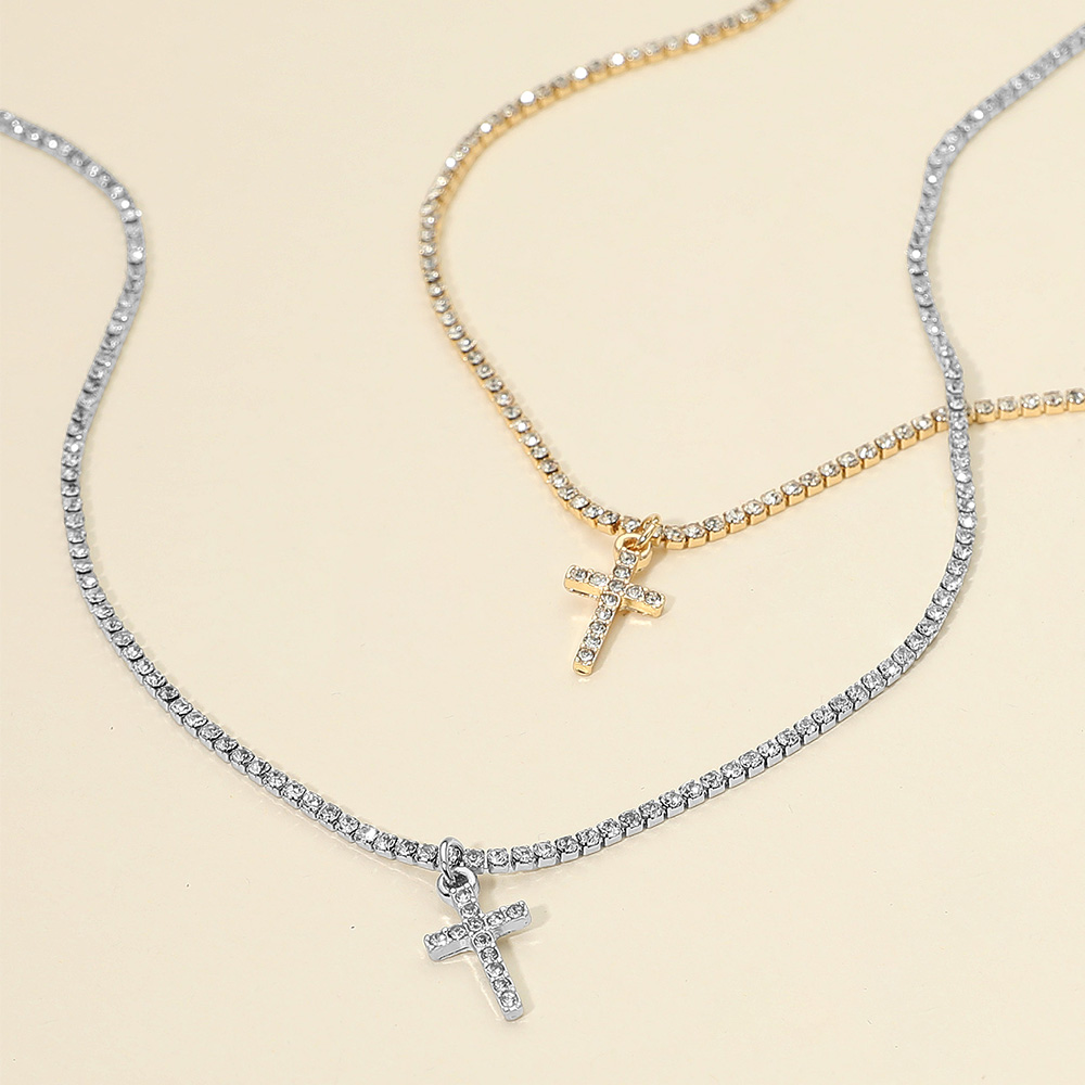 Details • Necklace Size : 15.5" + 3.5" L • Pendant Size : 0.3" X 0.75" • Elegant tennis chain necklace featuring a sparkling cross pendant. Perfect for layering or wearing alone, this timeless accessory adds a touch of faith and sophistication to everyday looks or special occasions. • Lead and Nickel Compliant