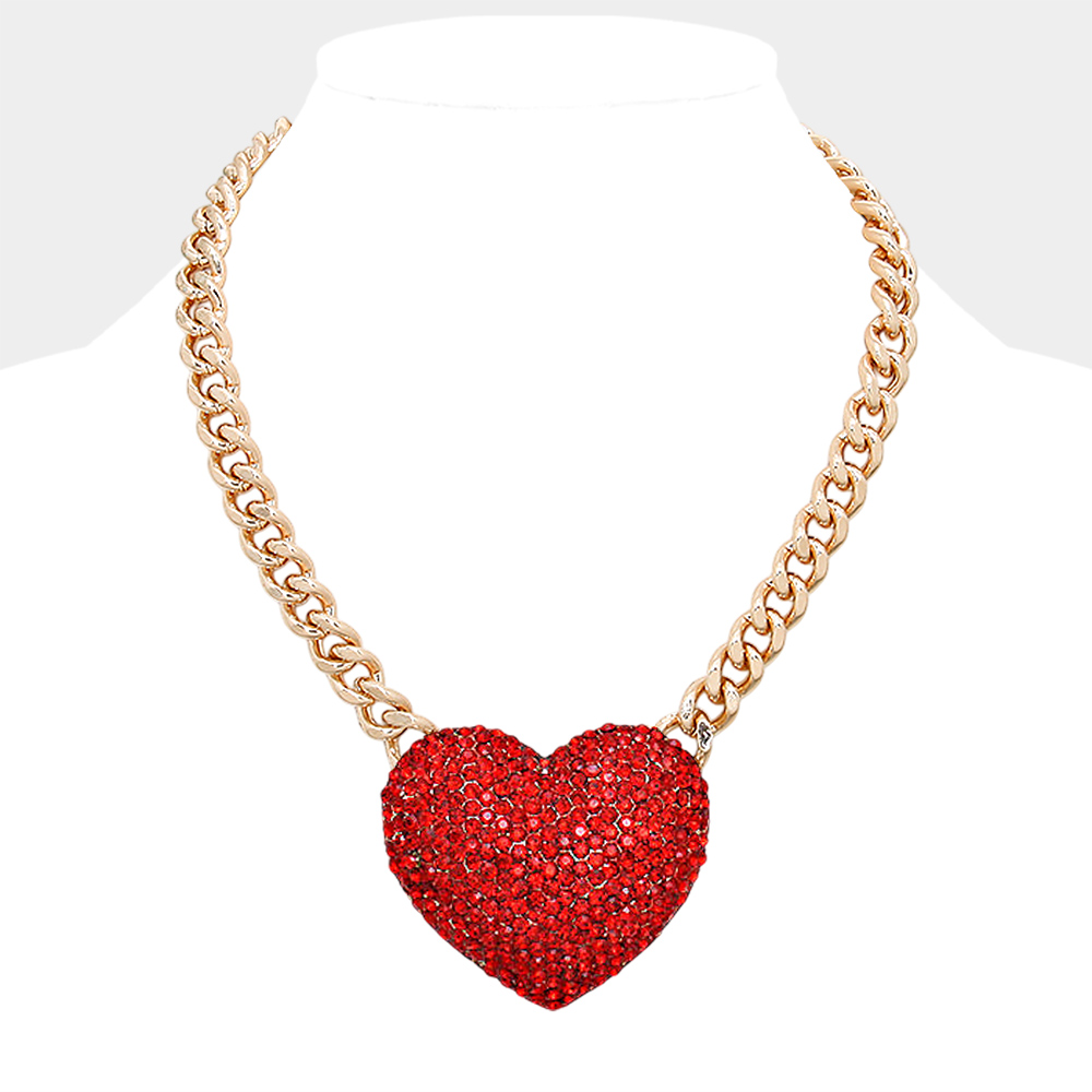 Hammered Metal Heart Pendant Chain Fabric Scarf Layered Necklace