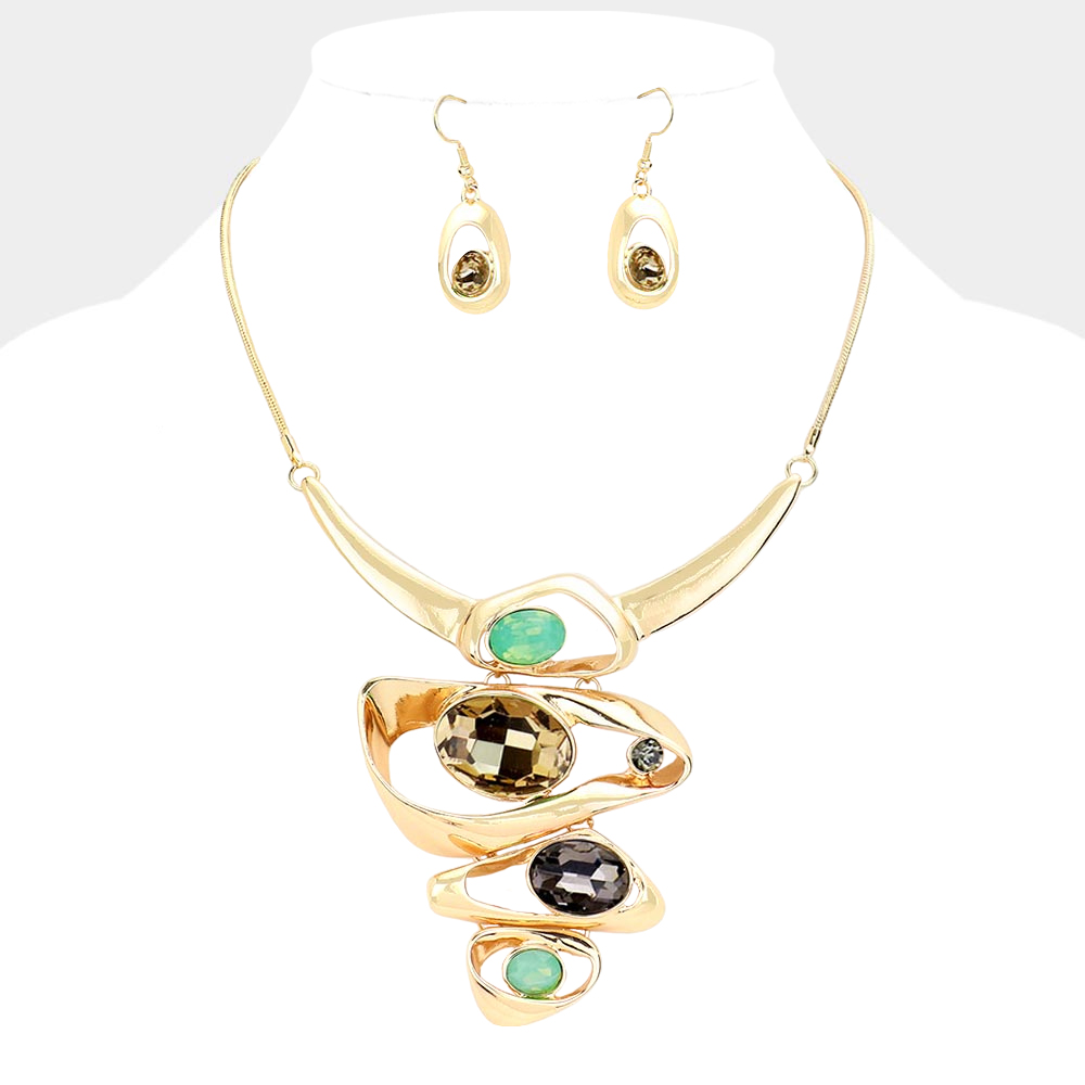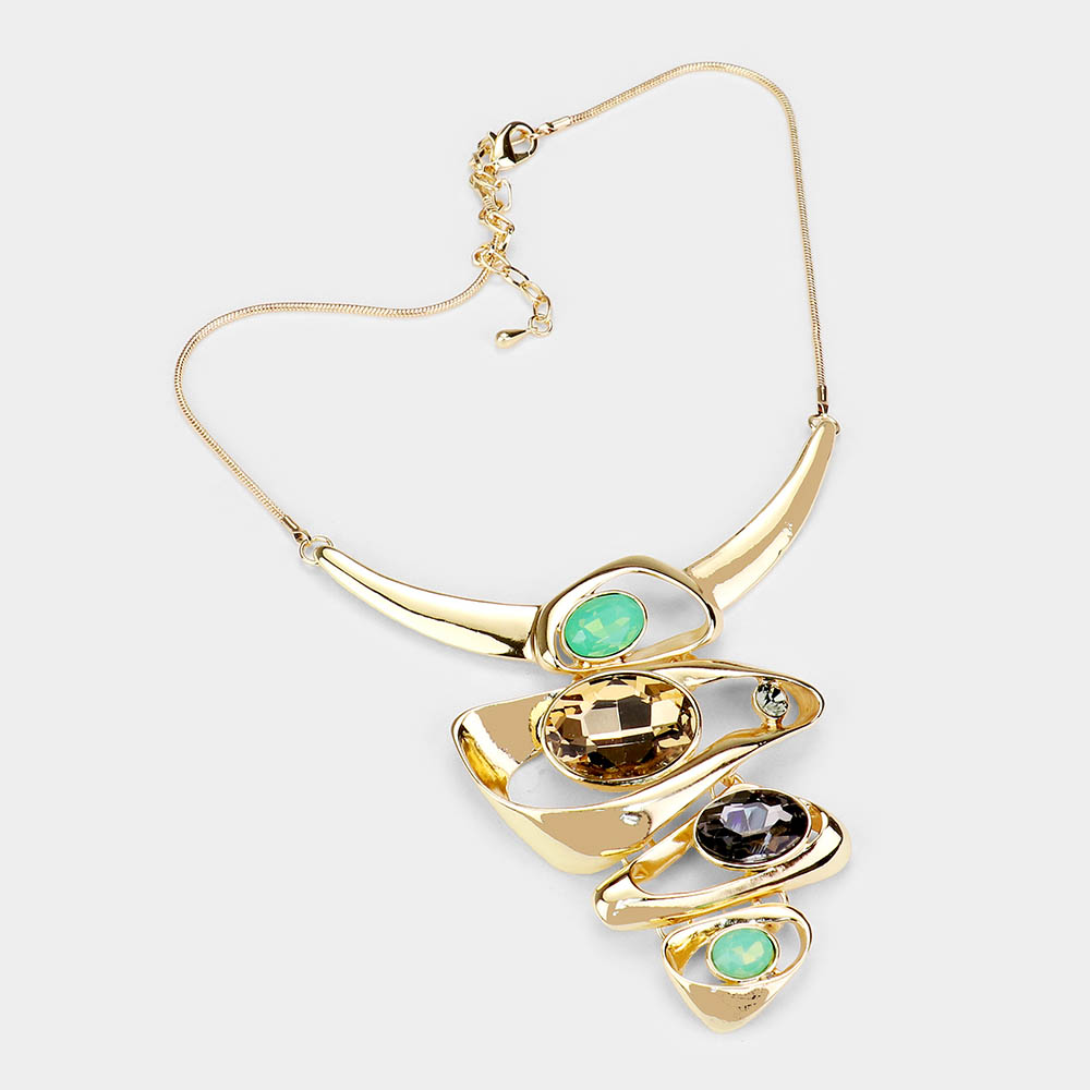 Teardrop Glass Crystal Pearl Vine Evening Necklace