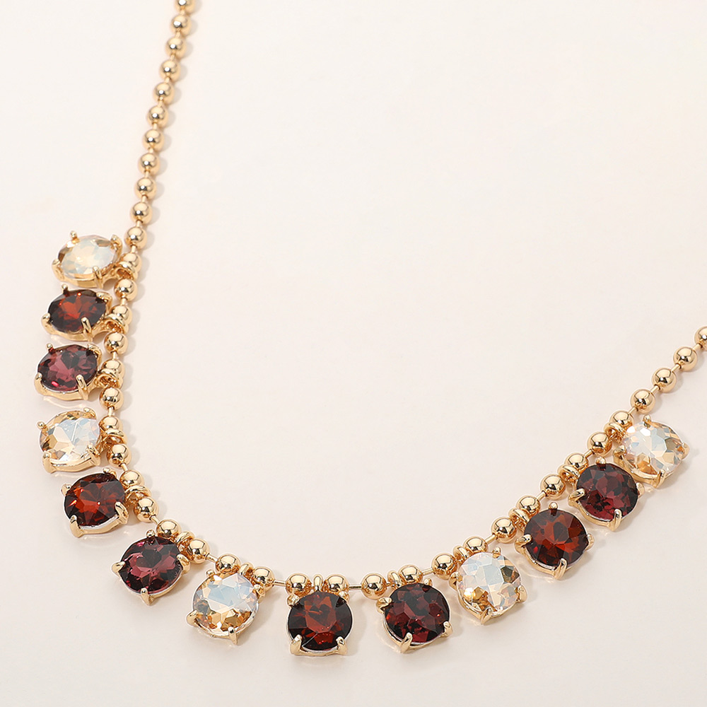 • Elegant necklace featuring a delicate beaded chain accented with faceted round stones arranged along the neckline. Designed to add refined sparkle and balanced detail, this versatile piece suits everyday wear, special occasions, gifting, and boutique collections with a timeless, polished appeal.