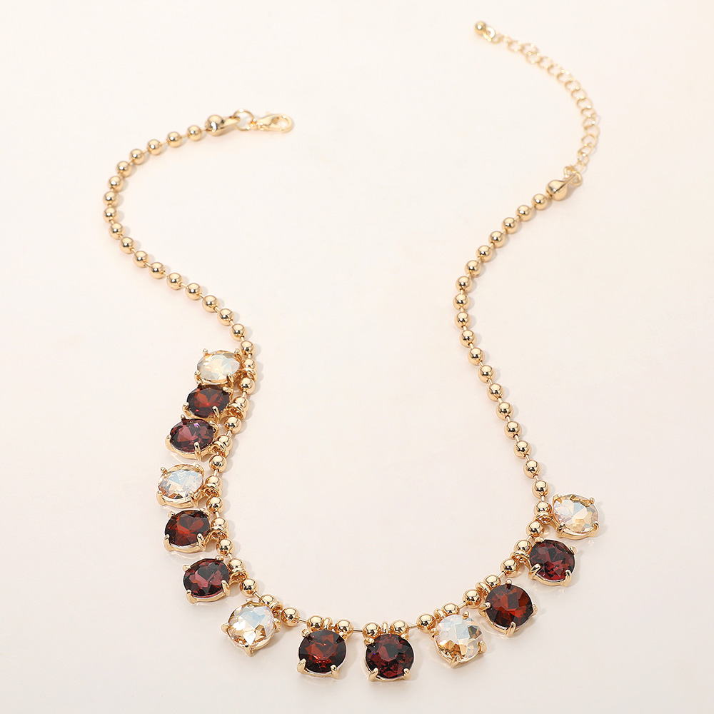 3PCS - Round Stone Detail Rhinestone Necklace Jewelry Set