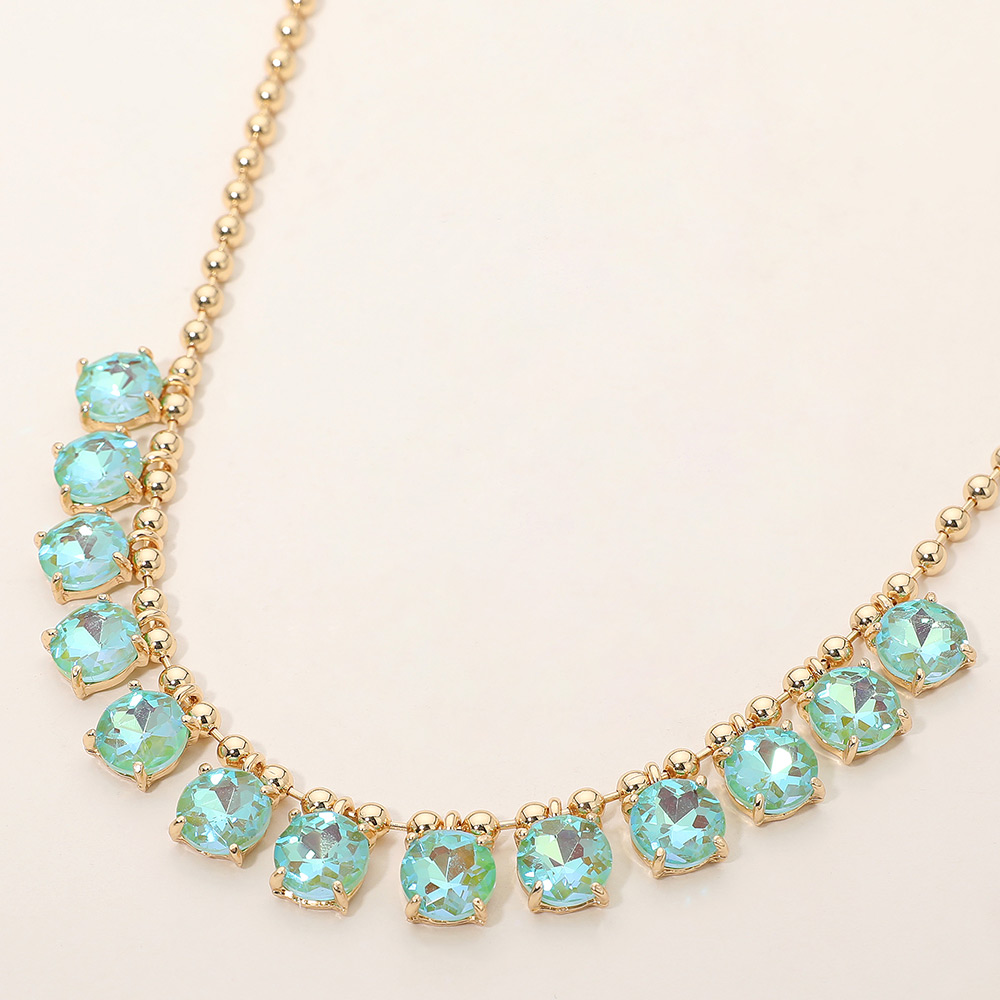 • Elegant necklace featuring a delicate beaded chain accented with faceted round stones arranged along the neckline. Designed to add refined sparkle and balanced detail, this versatile piece suits everyday wear, special occasions, gifting, and boutique collections with a timeless, polished appeal.