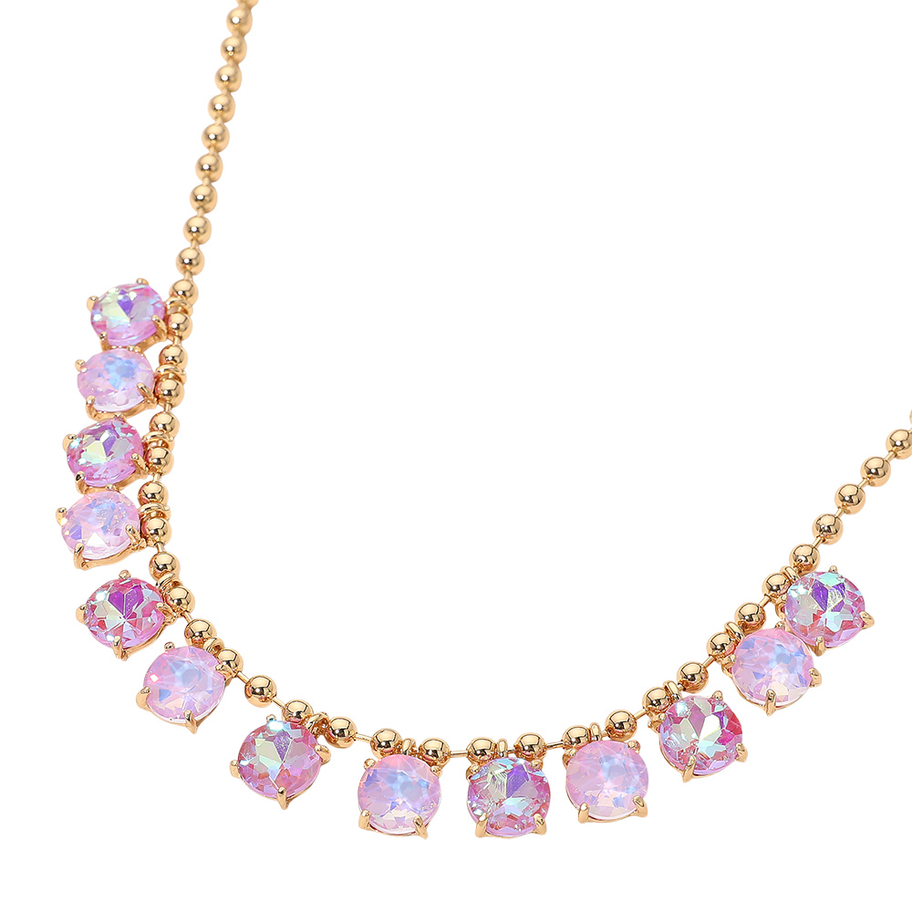 • Elegant necklace featuring a delicate beaded chain accented with faceted round stones arranged along the neckline. Designed to add refined sparkle and balanced detail, this versatile piece suits everyday wear, special occasions, gifting, and boutique collections with a timeless, polished appeal.