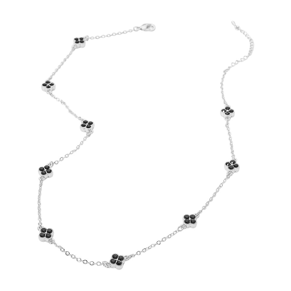 CZ Quatrefoil Charm Station Necklace CZ Quatrefoil Charm Station Necklace CZ Quatrefoil Charm Station Necklace