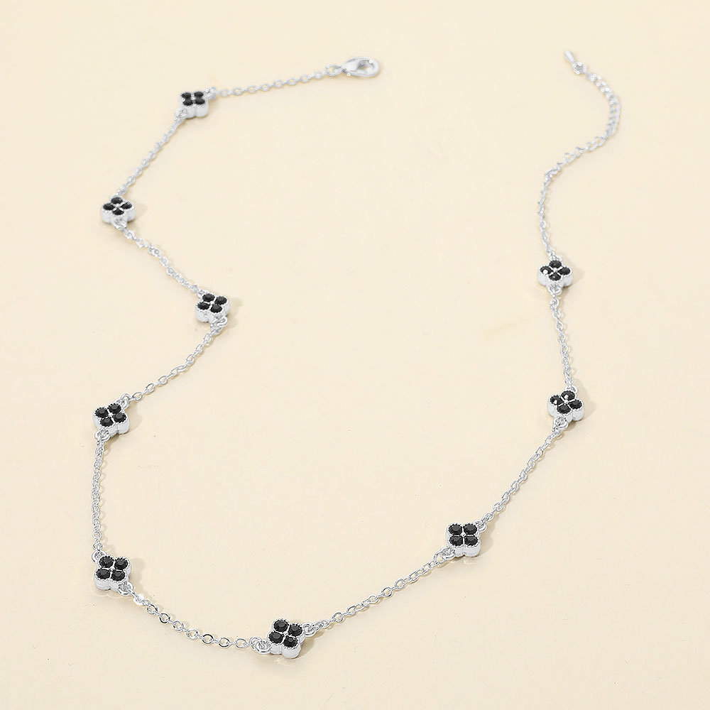 CZ Quatrefoil Charm Station Necklace