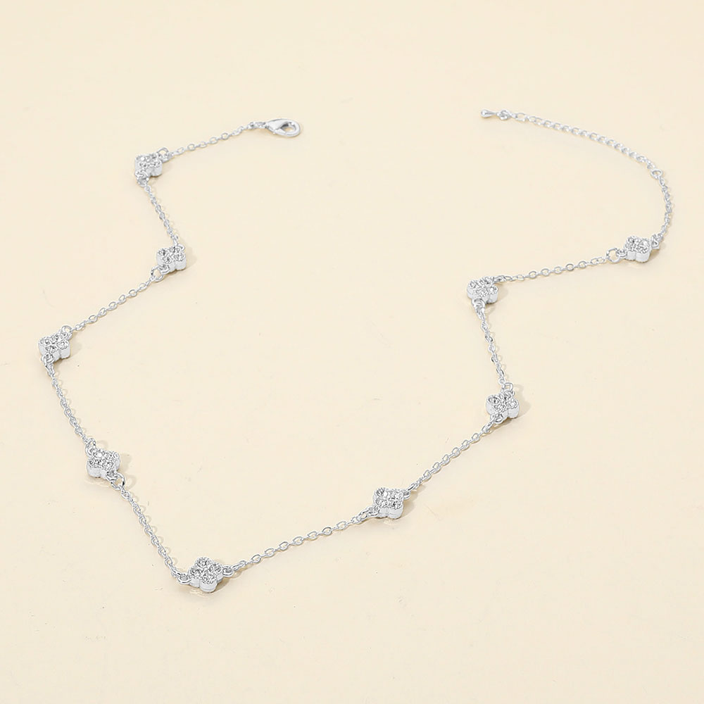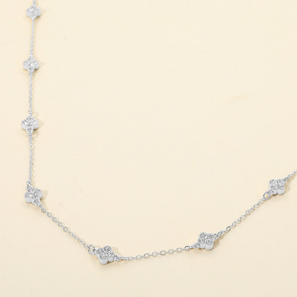 CZ Quatrefoil Charm Station Necklace CZ Quatrefoil Charm Station Necklace CZ Quatrefoil Charm Station Necklace