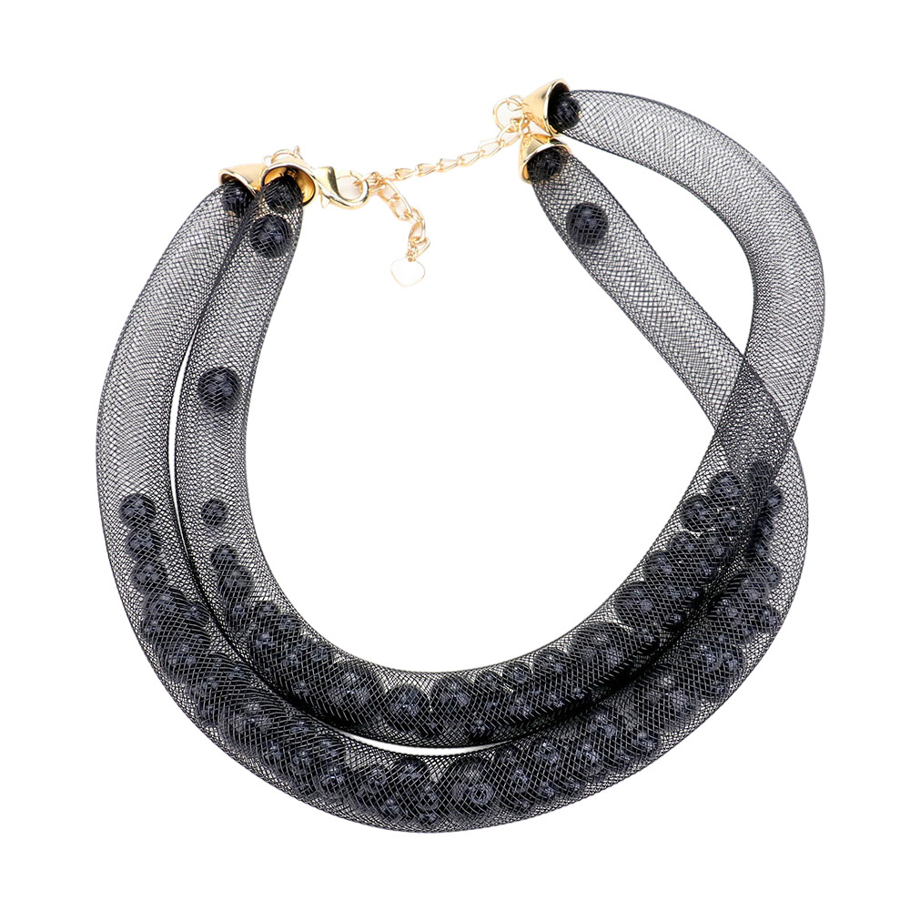Pearl Accented Triple Layered Mesh Bib Necklace