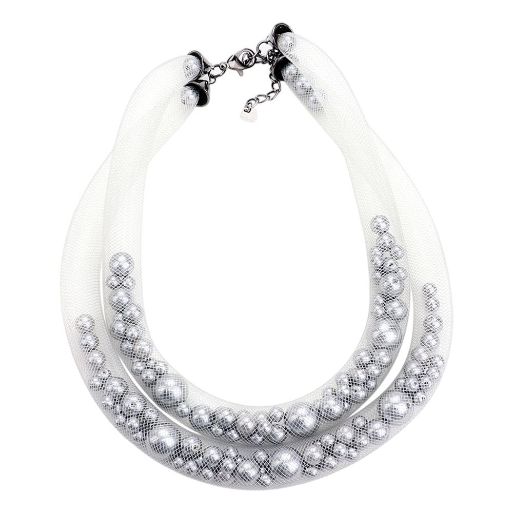 Pearl Accented Triple Layered Mesh Bib Necklace