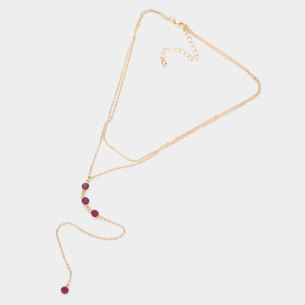 Oval Stone Accented V Shaped Rhinestone Necklace