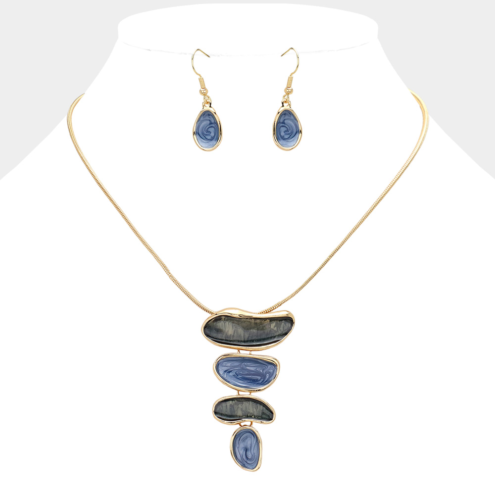 Enamel Abstract Pebble Plate Link Pendant Necklace