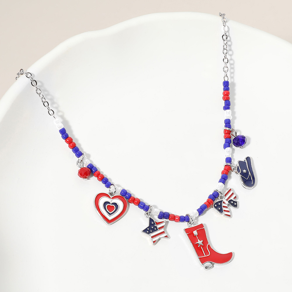 Enamel American USA Flag Western Boot Hat Bow Star Heart Charm Beaded Necklace