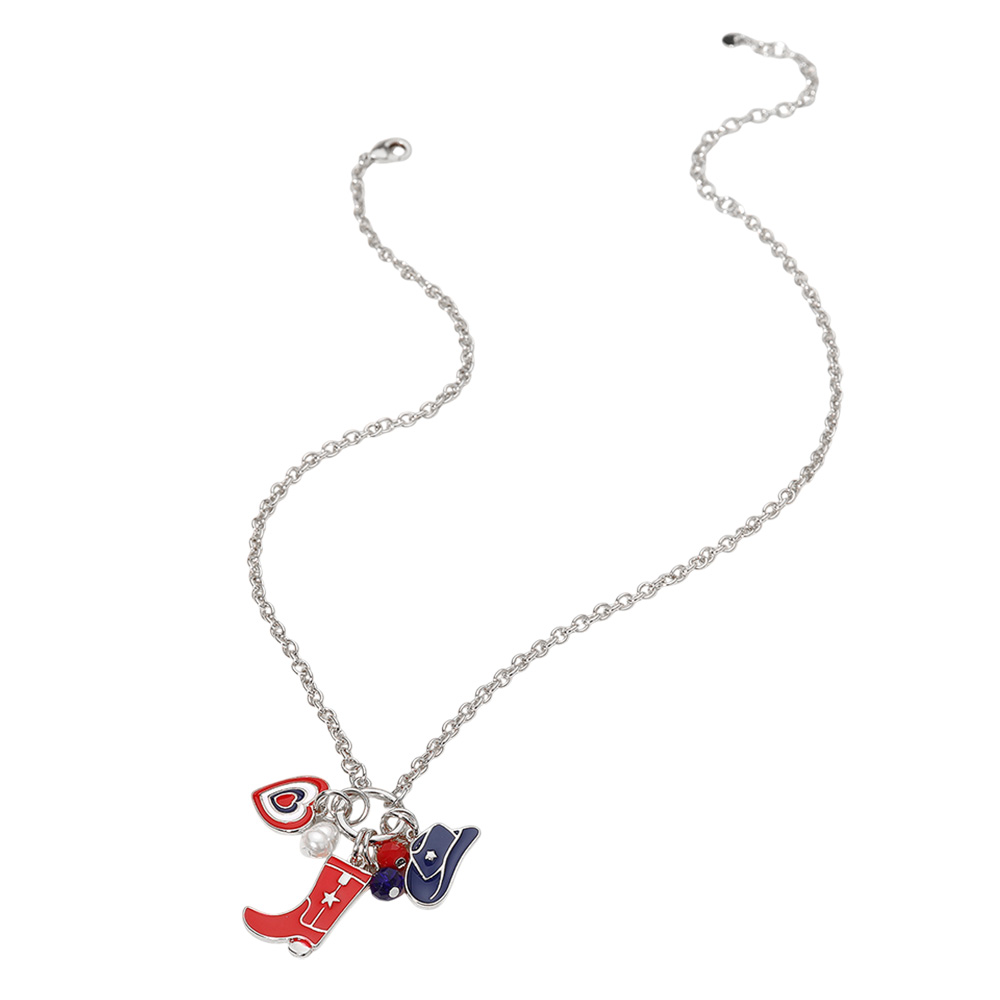 Enamel American USA Flag Western Cowboy Boot Hat Heart Pearl Charm Pendant Necklace