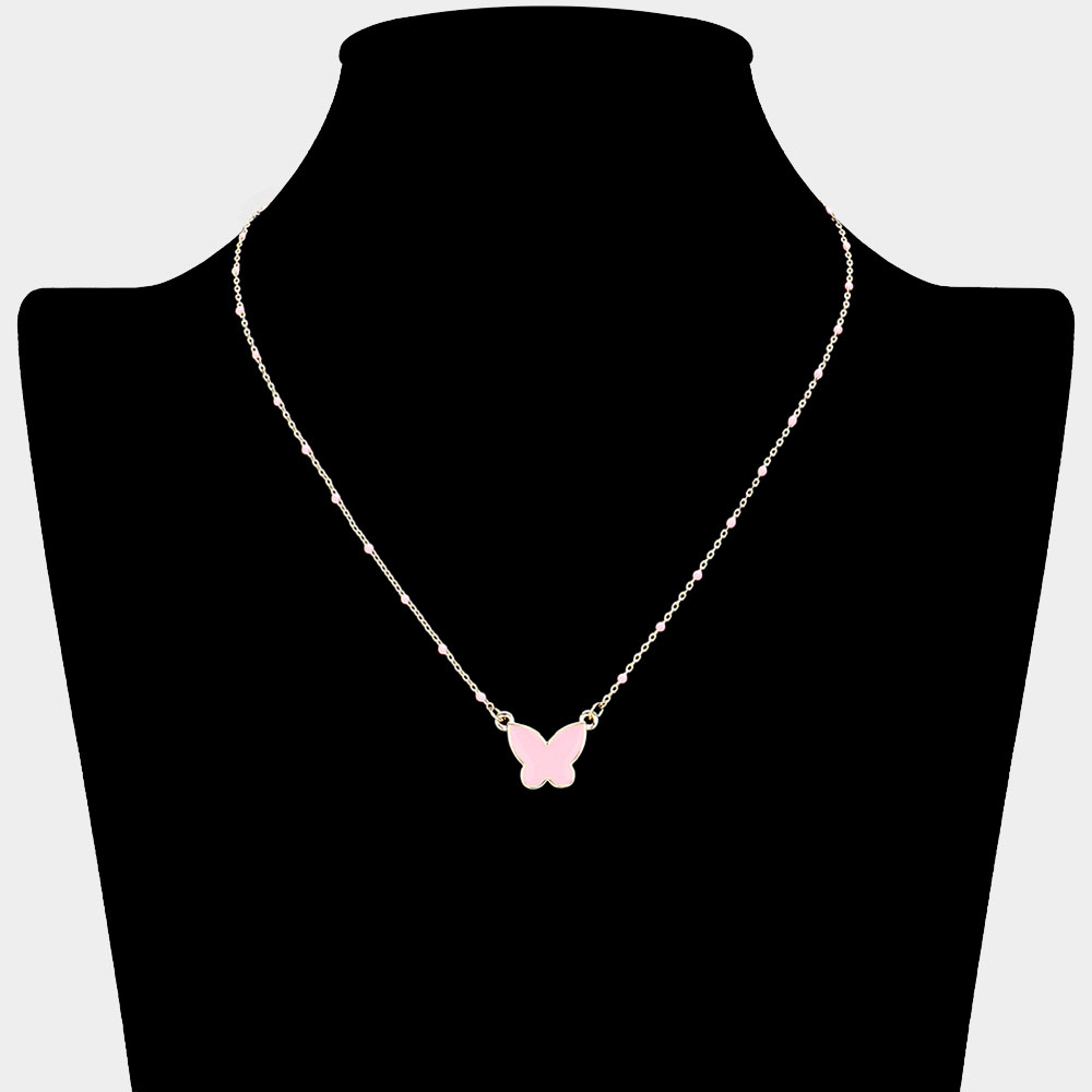 Enamel Butterfly Pendant Satellite Chain Necklace