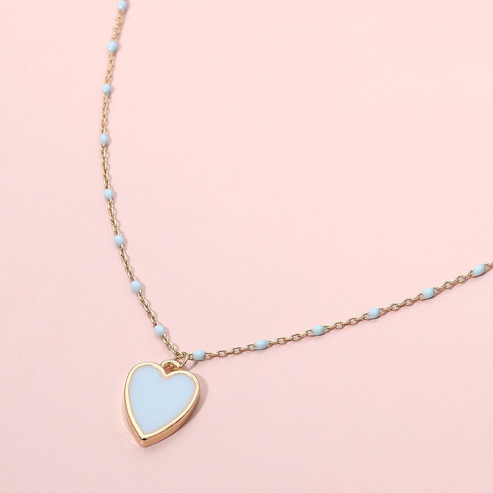 Enamel Heart Pendant Satellite Chain Necklace
