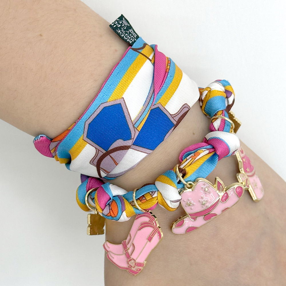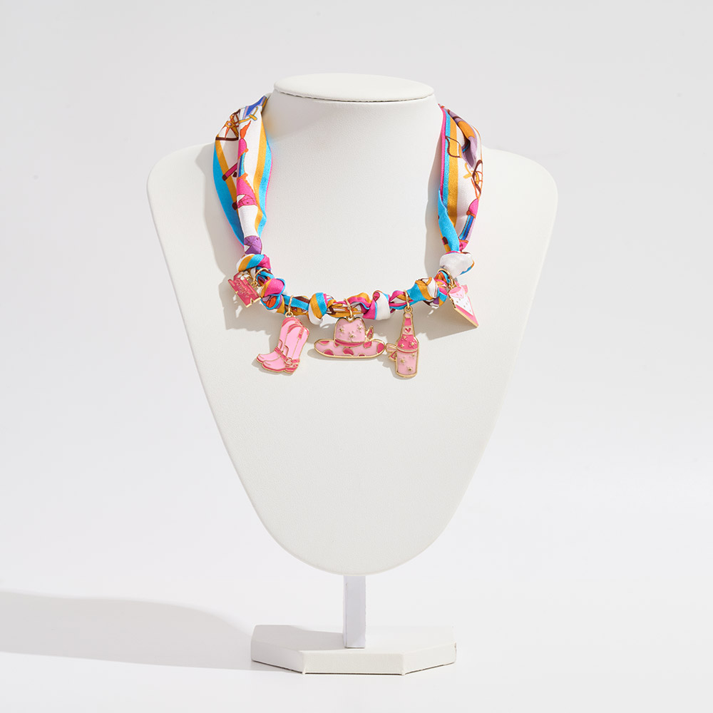 Enamel Western Theme Charm Station Fabric Scarf Necklace Adjustable Bracelet Bag Charm