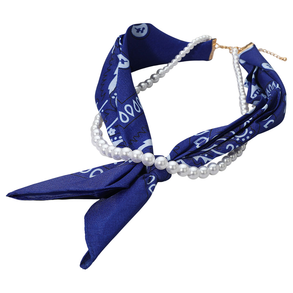 Details • Necklace Size : 20" + 3" L • Decor Size : 4" L • Print may vary • Turn heads with this pearl and scarf statement necklace, blending classic elegance with bold style. The chic combination of lustrous pearls and a patterned scarf creates a versatile accessory that elevates any outfit, perfect for casual charm or standout sophistication. • Lead and Nickel Compliant