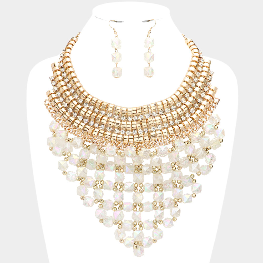 Faceted Cube Bead Cluster Bib Necklace