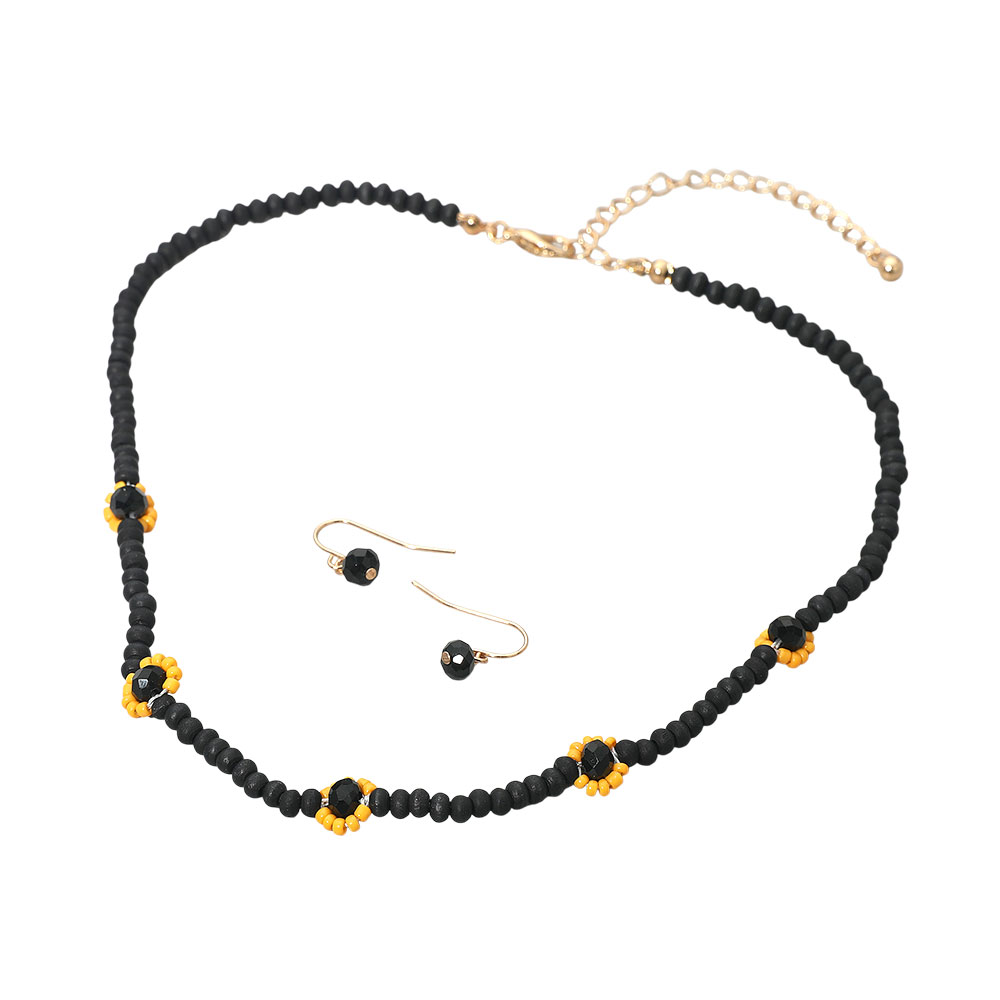 Details • Necklace Size : 15" + 2" L • Decor Size : 0.3" L • Earring Size : 0.3" L • Stylish beaded necklace and earring set designed with contrasting accent beads for a modern, minimalist look. Perfect for everyday wear or casual occasions, this elegant jewelry set adds a subtle pop of style and sophistication to any outfit, making it a versatile accessory choice. • Lead and Nickel Compliant
