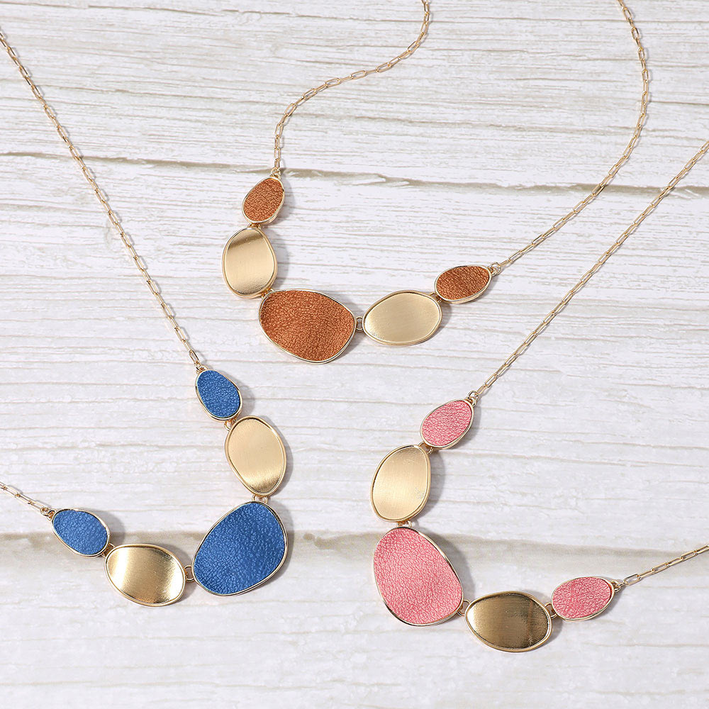 Faux Leather Metal Abstract Plate Link Dangle Earrings
