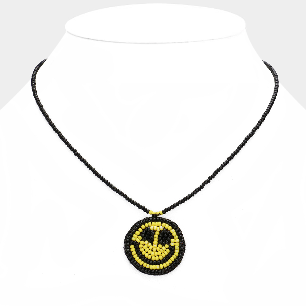 • Playful smiley face pendant necklace designed with tiny seed beads for a fun and uplifting look. Perfect for adding a touch of positivity to casual outfits, this lightweight piece brings a cheerful and trendy vibe to everyday wear or layered jewelry styles.