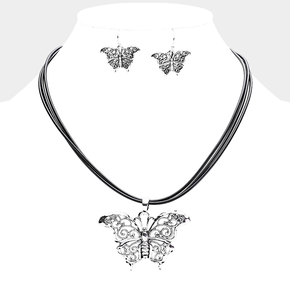 Filigree Antique Butterfly Pendant Necklace