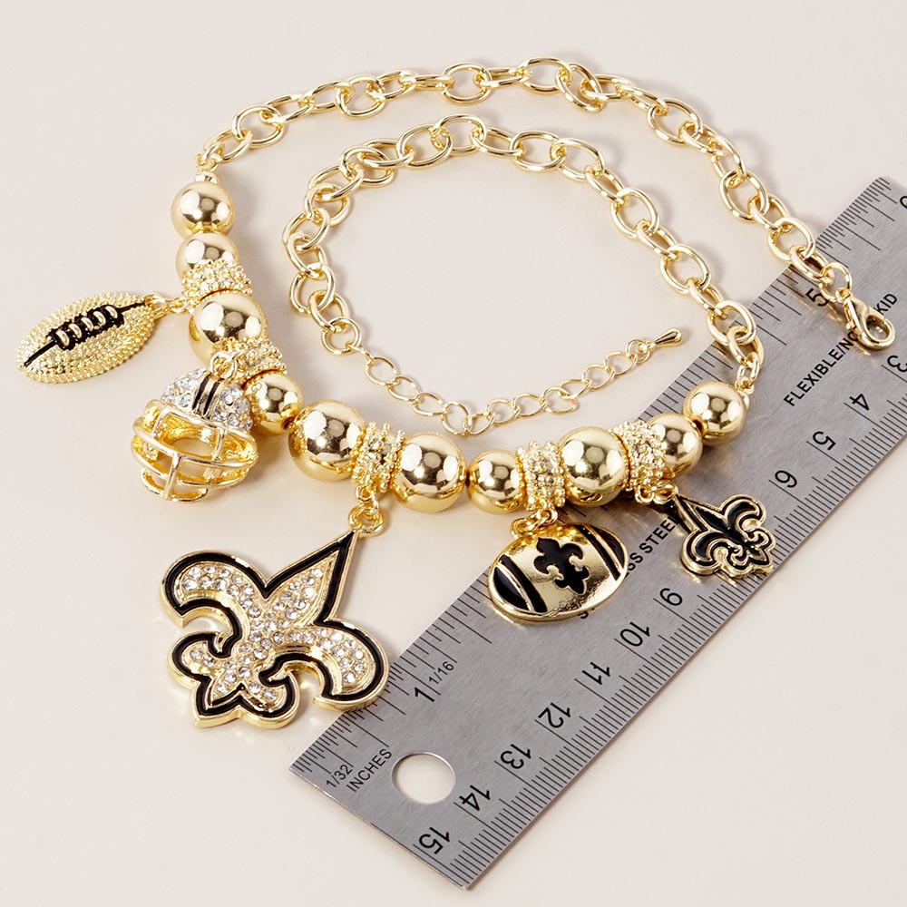 Fleur de Lis Football Theme Charms Metal Chain Necklace