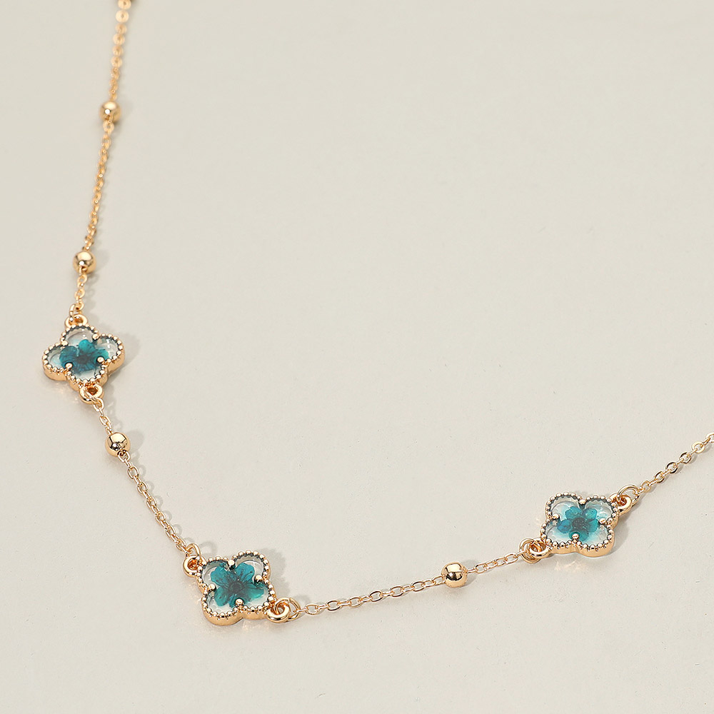 Details • Necklace Size : 16" + 3" L • Decor Size : 0.5" L • Add subtle sparkle to everyday outfits with the Floral Encased Quatrefoil Charm Station Necklace, featuring delicately placed floral accents along a refined chain. Designed for easy layering or solo wear, this necklace offers timeless charm with a light, feminine touch for any occasion. • Lead and Nickel Compliant