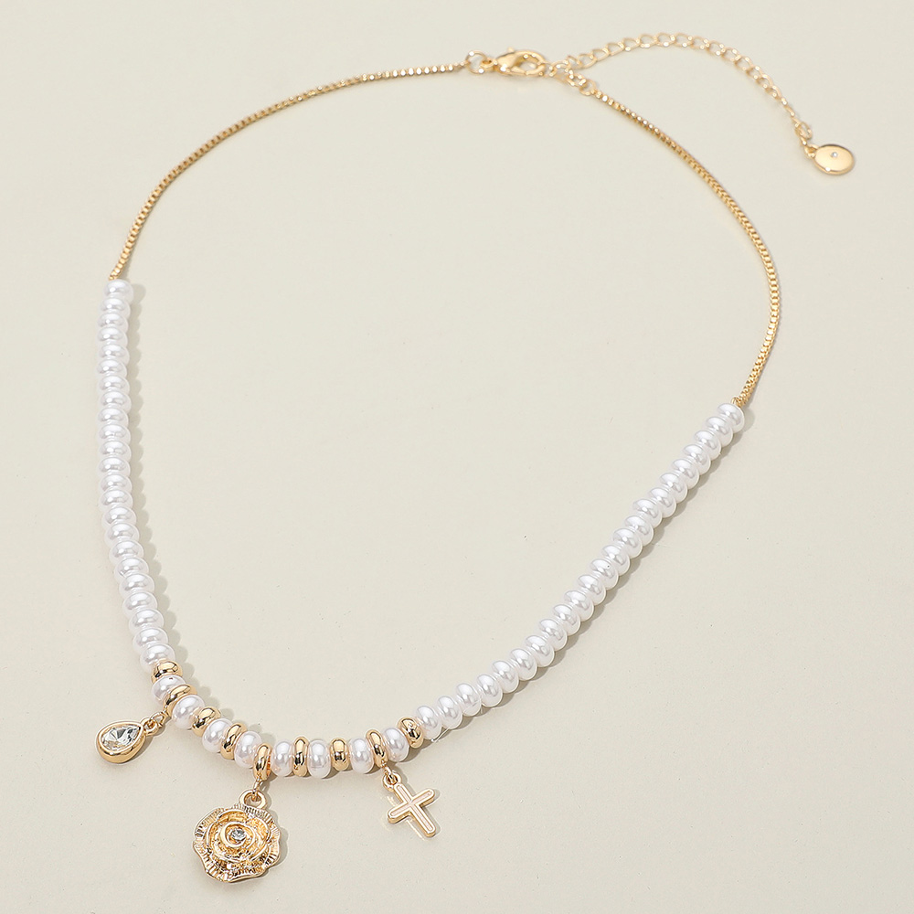 Flower Cross Teardrop Stone Cluster Charm Pearl Beaded Necklace Flower Cross Teardrop Stone Cluster Charm Pearl Beaded Necklace Flower Cross Teardrop Stone Cluster Charm Pearl Beaded Necklace