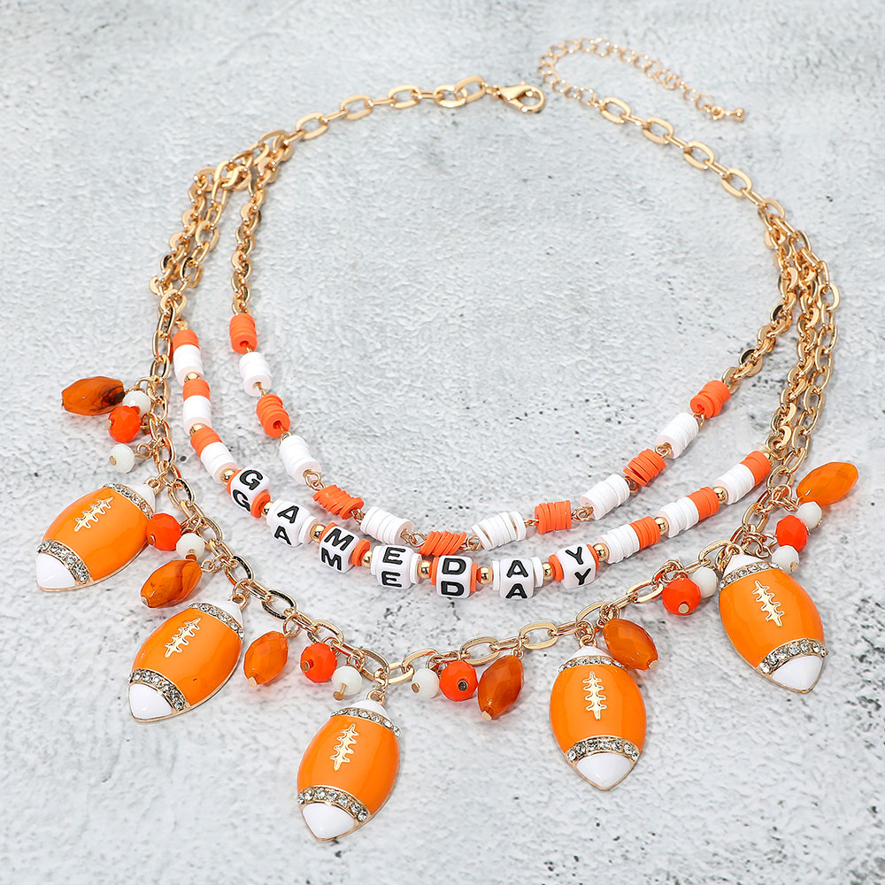 Football Charm Embellished GAME DAY Heishi Beaded Layered Necklace Football Charm Embellished GAME DAY Heishi Beaded Layered Necklace Football Charm Embellished GAME DAY Heishi Beaded Layered Necklace