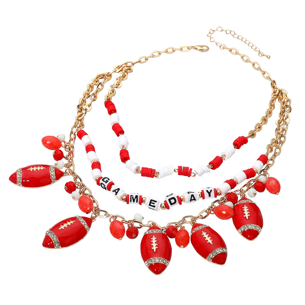 Football Charm Embellished GAME DAY Heishi Beaded Layered Necklace