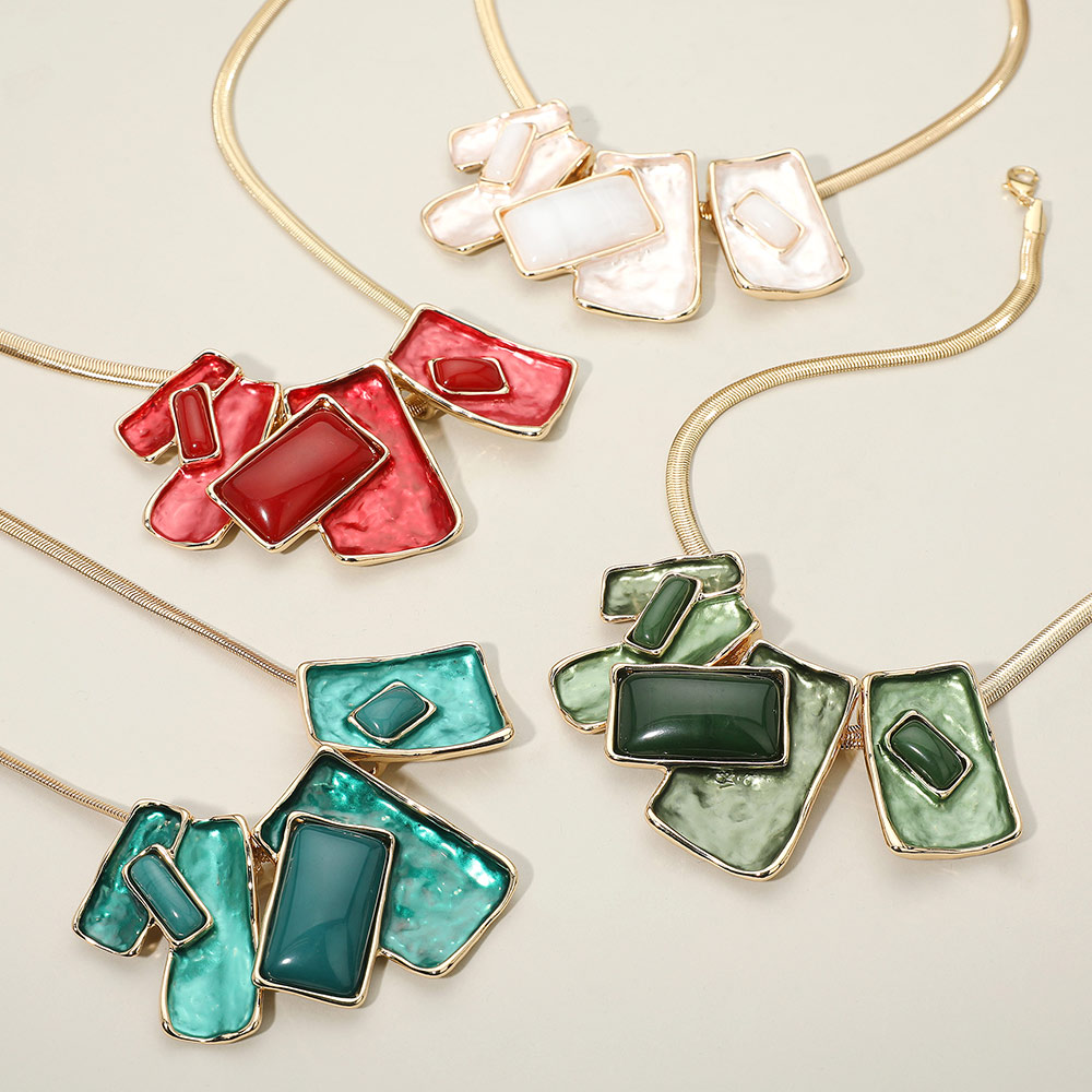 Geometric Enamel Rectangular Plate Beaded Necklace Geometric Enamel Rectangular Plate Beaded Necklace Geometric Enamel Rectangular Plate Beaded Necklace