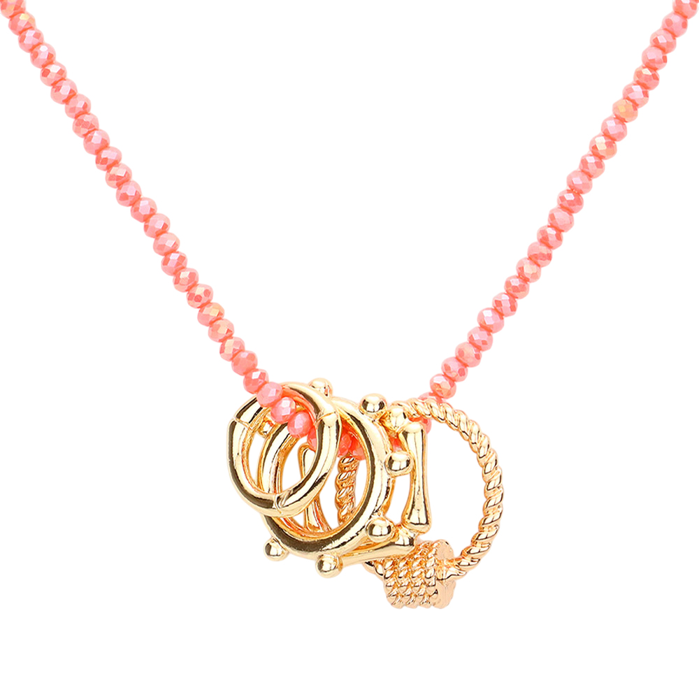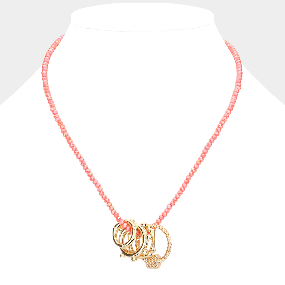 Geometric Open Metal Pendant Faceted Beaded Necklace