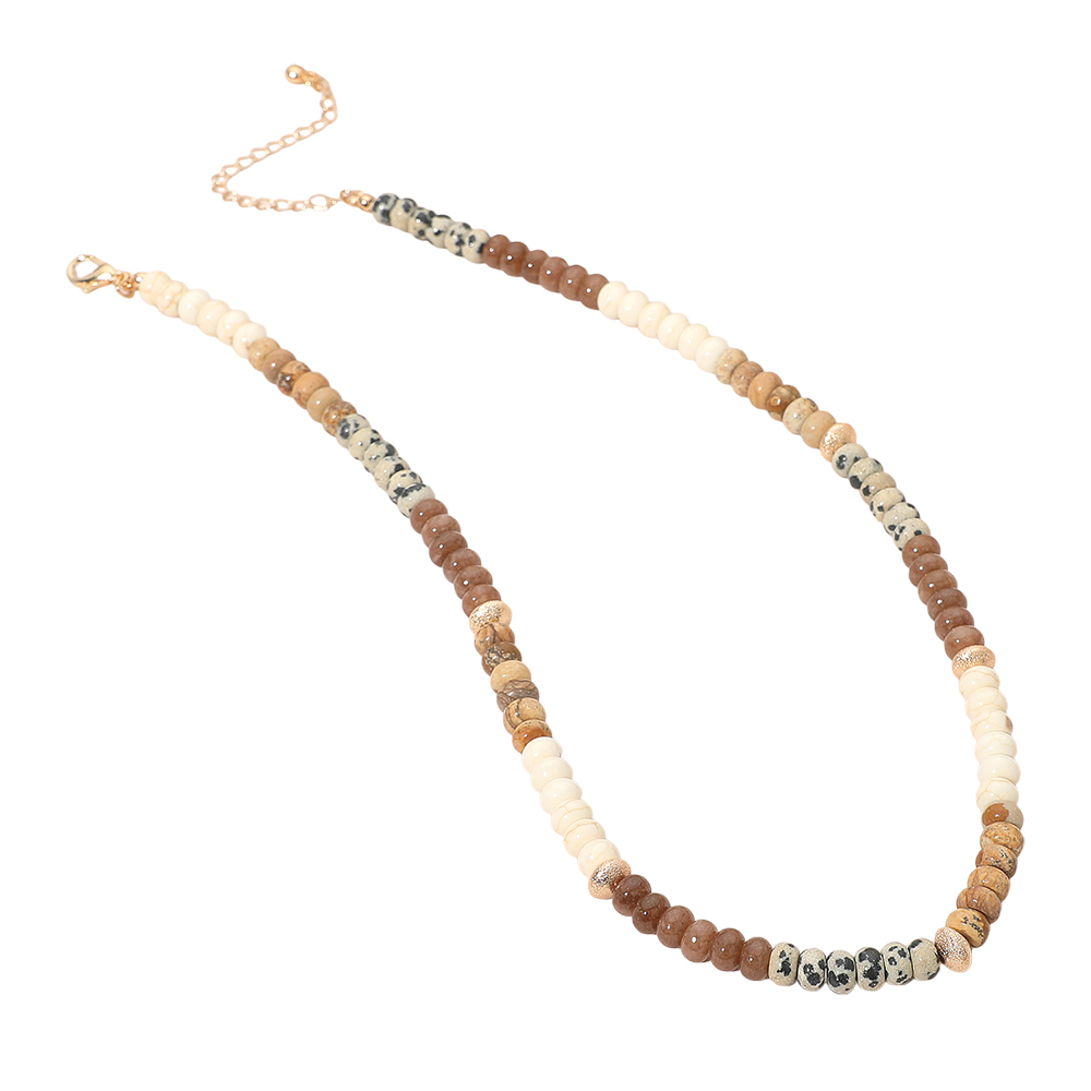 Details • Necklace Size : 17" + 2.75" L • Decor Size : 0.25" L • Elegant beaded necklace featuring round polished beads and gold accent spacers for a refined layered look. Designed for versatile styling, this statement necklace adds sophistication to casual or formal outfits, making it a perfect accessory for any occasion or season. • Lead and Nickel Compliant
