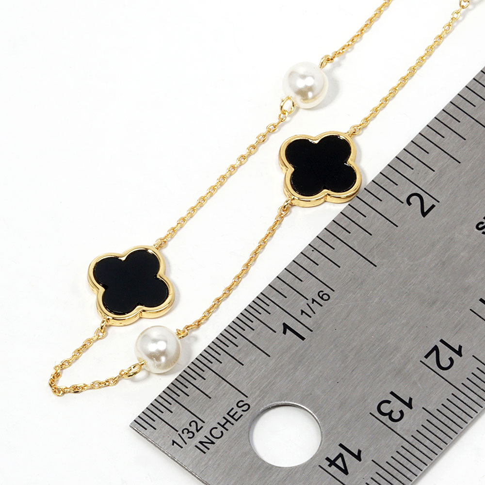 White Gold Dipped Mother of Pearl Quatrefoil Station Necklace