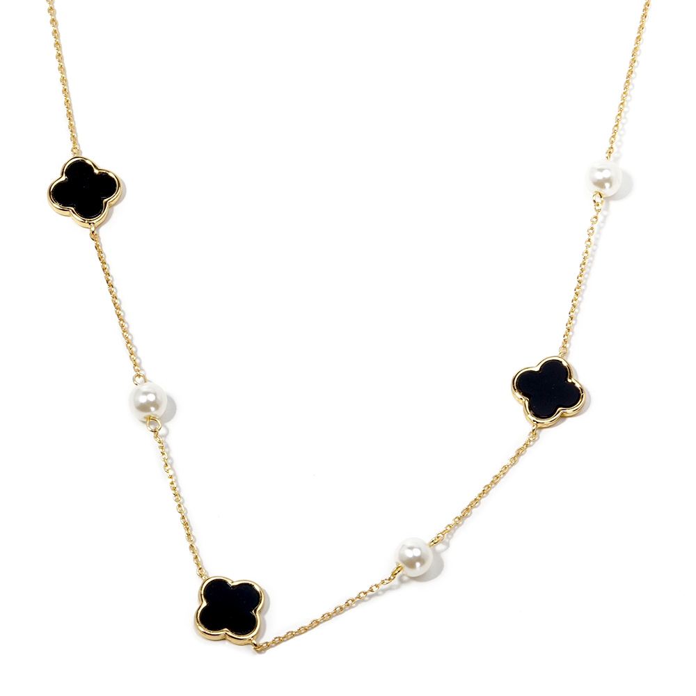 Gold Dipped Mother of Pearl Quatrefoil Station Necklace