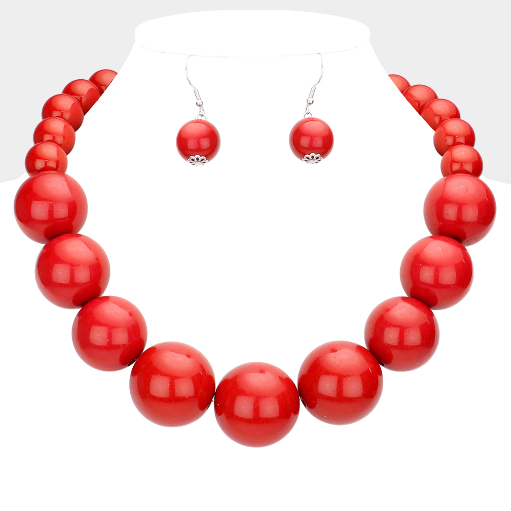 • Elegant graduated bead necklace paired with matching drop earrings for a coordinated, polished look. Designed to create visual balance and timeless appeal, this jewelry set is ideal for statement styling, special occasions, and boutique collections seeking classic silhouettes with versatile, easy-to-wear elegance.