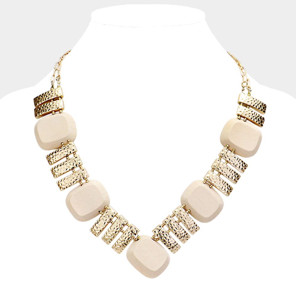 Natural Stone Pearl Wood Pointed Faceted Heishi Beaded Double Layered Necklace