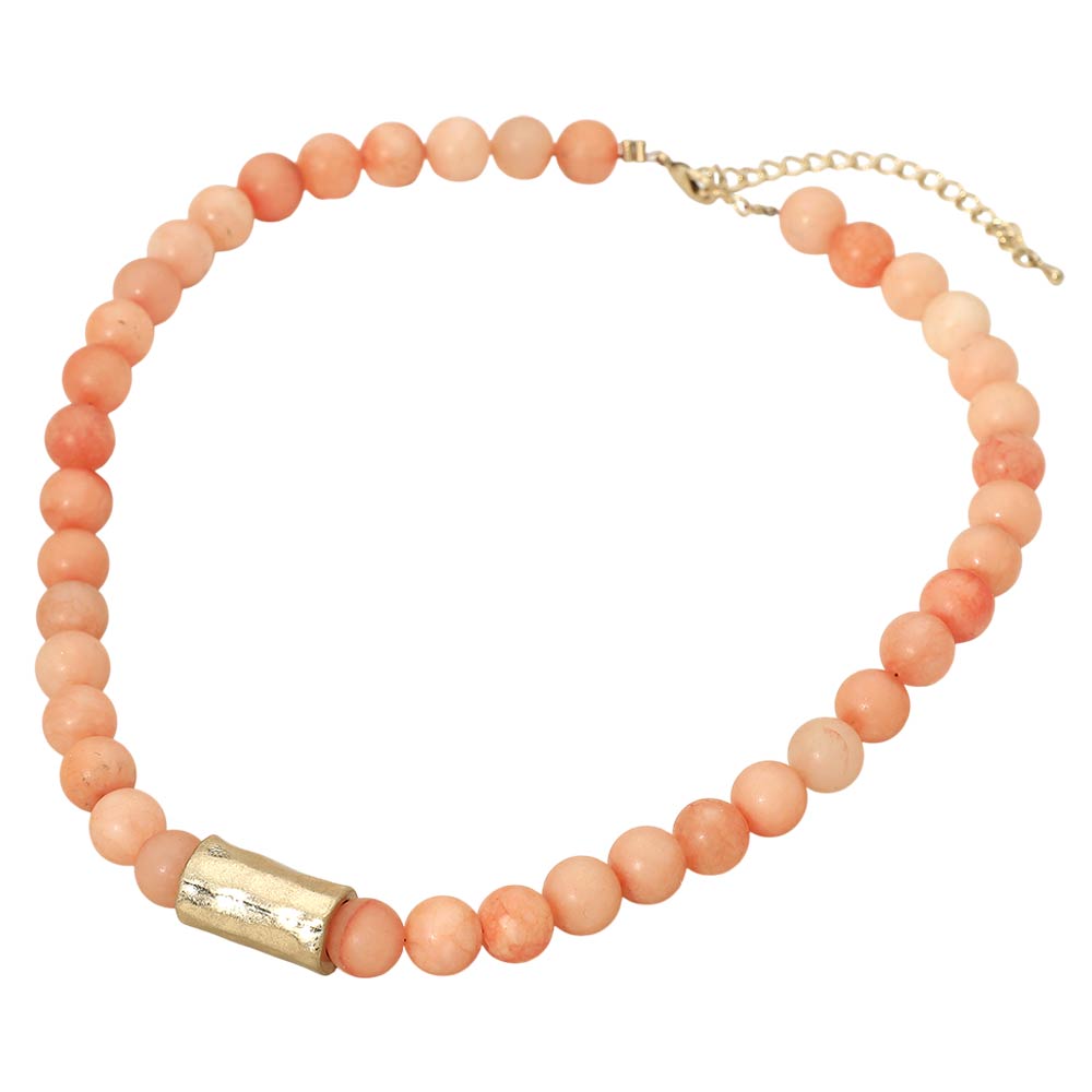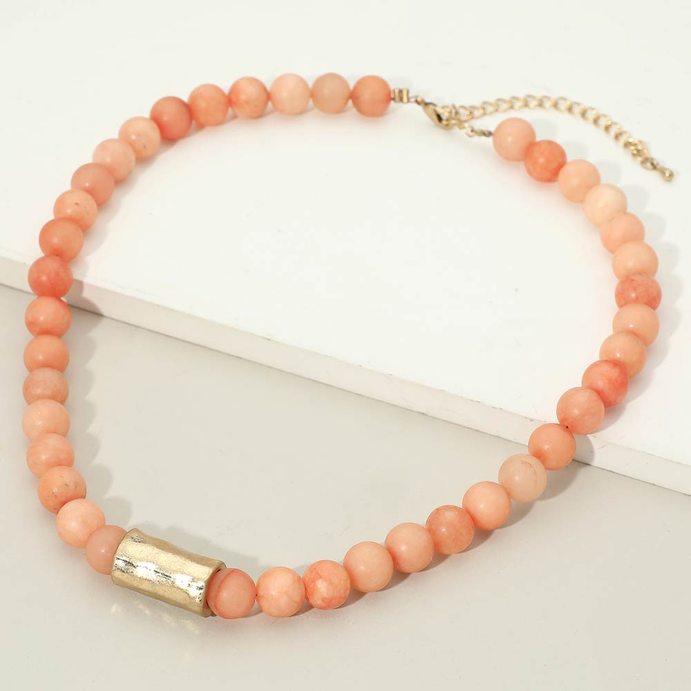 • This classic beaded accent necklace features evenly spaced round beads with a sleek focal detail for a clean, modern look. Designed for effortless styling, it layers easily with other necklaces or stands alone as a simple statement. Ideal for boutiques seeking versatile accessories that transition seamlessly from casual wear to polished outfits while offering timeless appeal and everyday wearability.