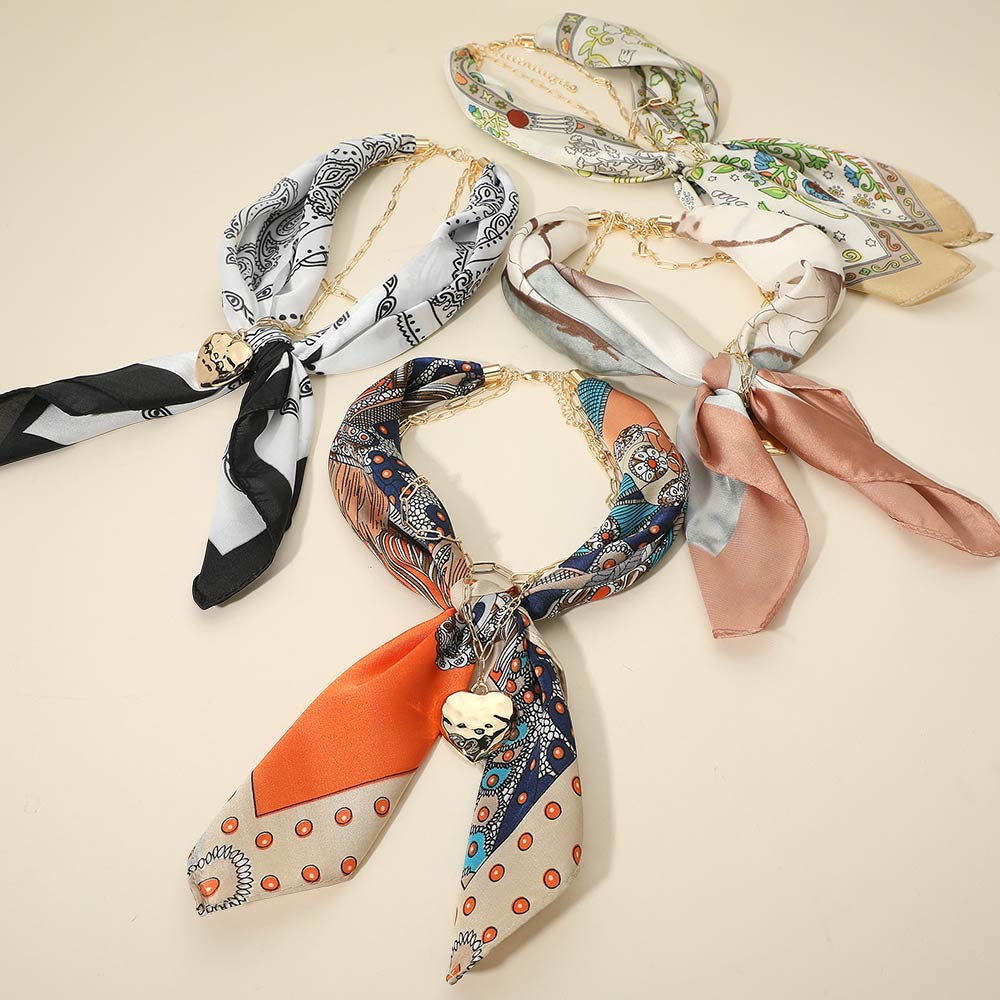 • This chain detail scarf necklace blends a soft draped scarf with a linked accent and heart charm for a refined statement look. Designed to wear as a necklace, it adds effortless polish to casual and dressy outfits, making it a versatile accessory for everyday styling and elevated fashion collections.